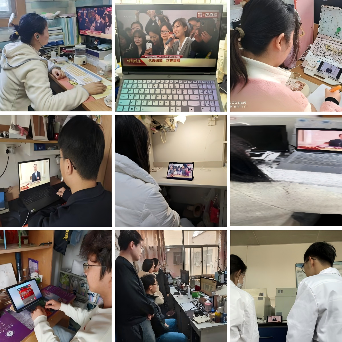 支部依托QQ群、学习强国平台等渠道提前发布直播链接和学习资料,要求党员同志以个人或课题组为单位通过实验室、宿舍等场所灵活观看开幕会盛况。