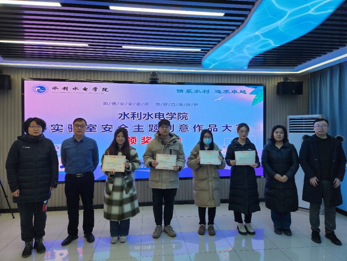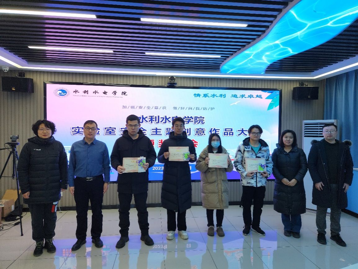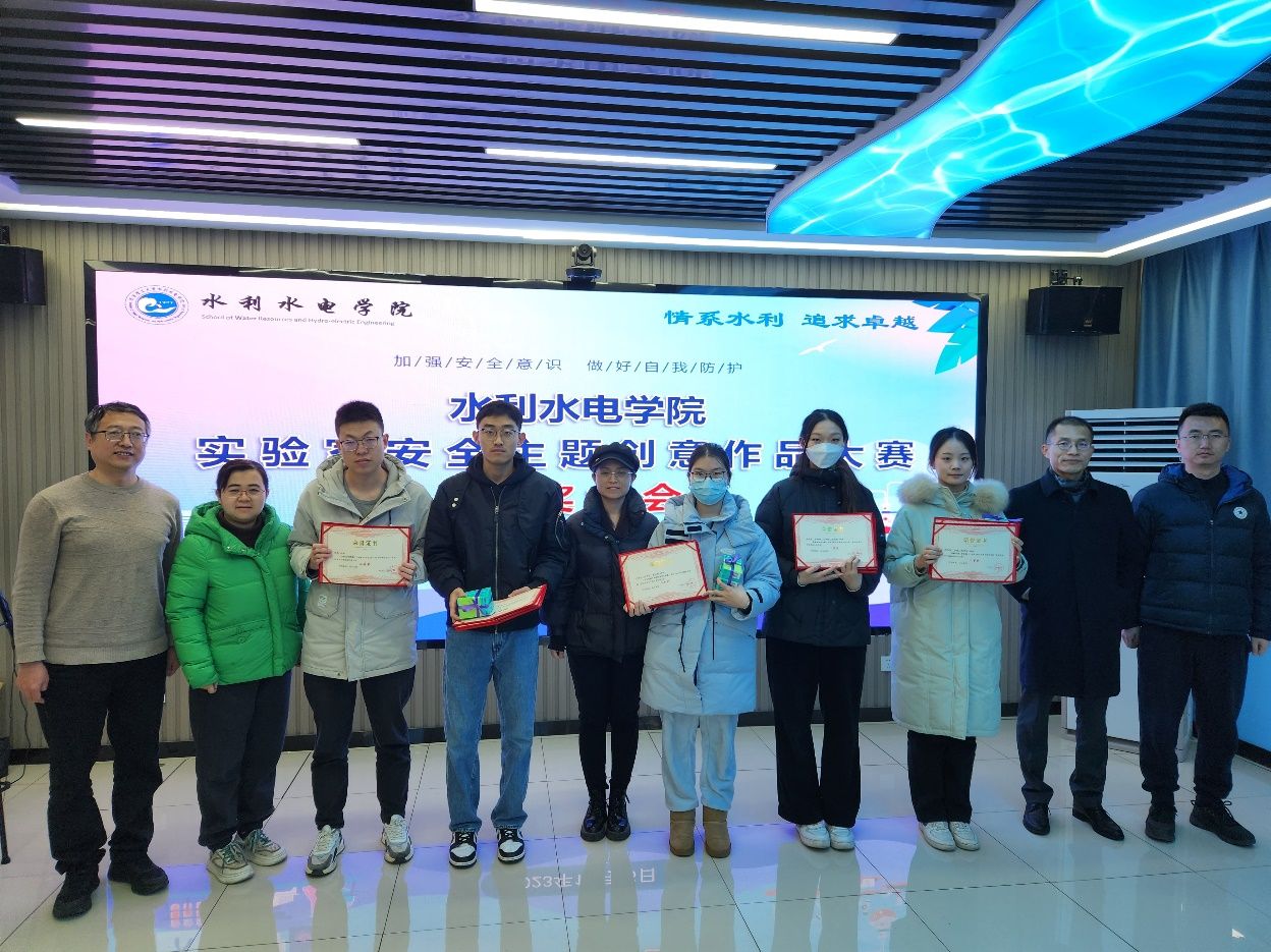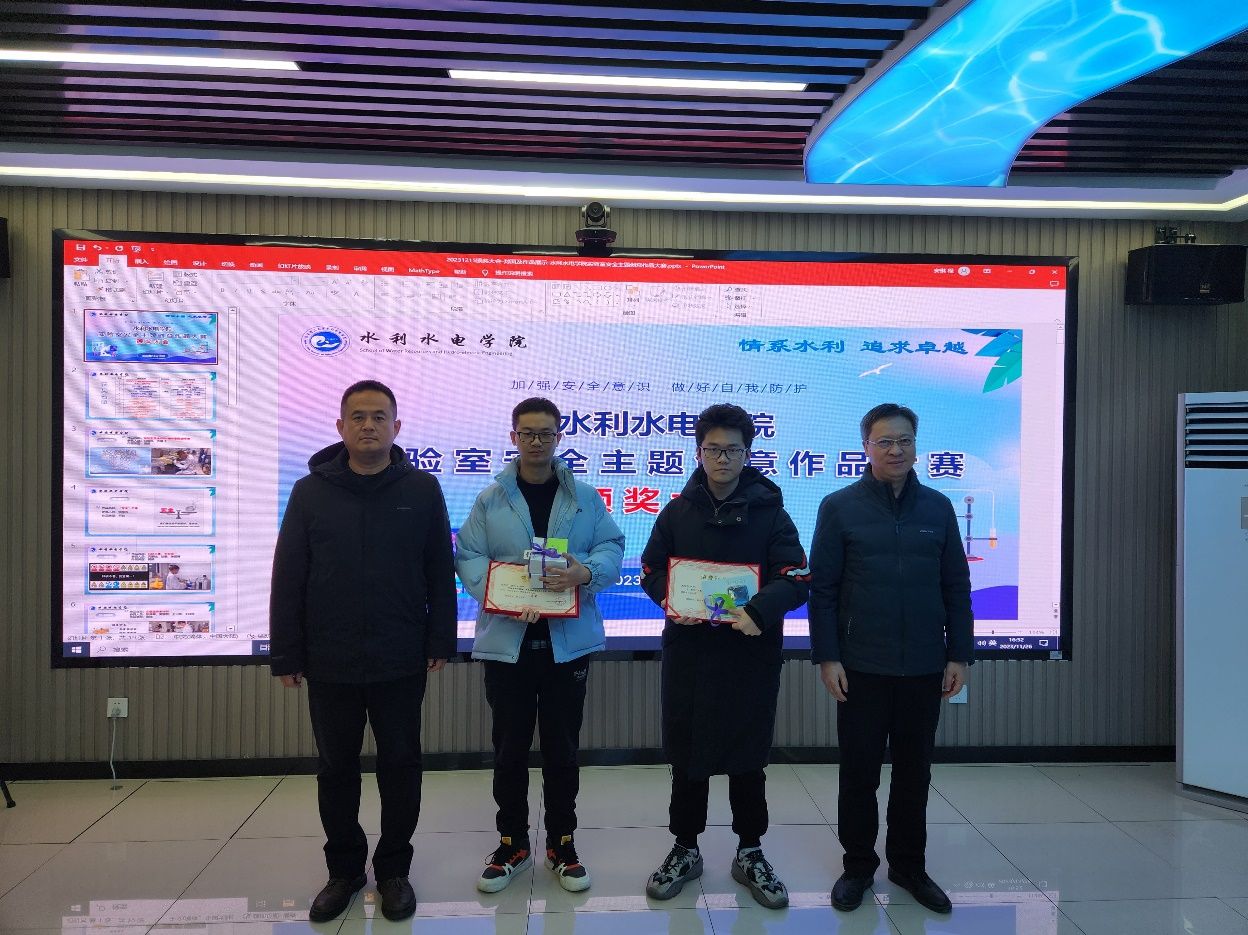 12月15日下午,必赢网络游戏平台在教四楼虚拟仿真中心举办了第一届实验室安全主题创意作品大赛颁奖大会。大会特别邀请校保卫处消防科科长宋伟、实验室管理处安全科高昊宇、资产管理处安全专员李鲁,水电学院副院长吴罗长、西北旱区生态水利国家重点实验室副主任罗军刚、学工办主任杨帆、农工系主任吴军虎、水力学所副主任张巧玲、水工系副主任宋锦焘、市政系教师代表李晓良作为颁奖嘉宾。大会由实验中心主任高扬主持。