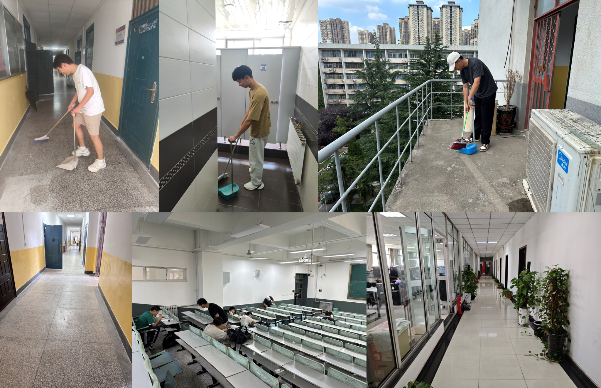 活动中,各班级同学踊跃参与,重点对教四楼、教六楼的教室、走廊、楼梯间等公共区域进行了全面清扫和整理。同学们分工明确、配合默契,发扬不怕脏、不怕累的劳动精神,认真清理卫生死角,规范整理物品摆放,不放过任何一个角落。经过大家的共同努力,整个教学楼区域环境焕然一新,营造出更加干净、整洁、舒适的学习和生活氛围。