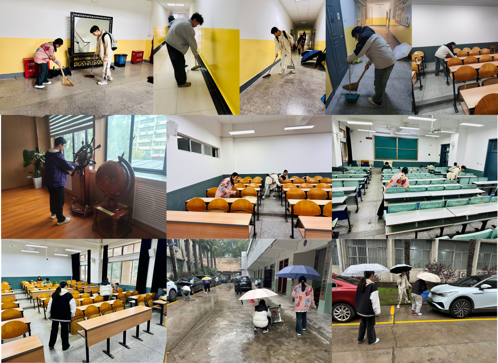 活动中,各班级同学踊跃参与,重点对教四楼、教六楼的教室、走廊、楼梯间等公共区域进行了全面清扫和整理。同学们分工明确、配合默契,发扬不怕脏、不怕累的劳动精神,认真清理卫生死角,规范整理物品摆放,不放过任何一个角落。经过大家的共同努力,整个教学楼区域环境焕然一新,营造出更加干净、整洁、舒适的学习和生活氛围。