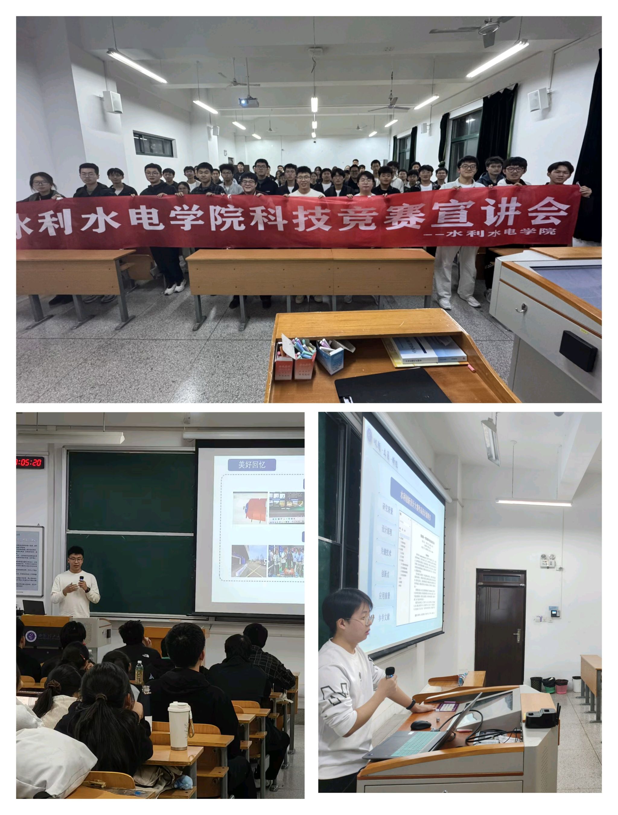为深入学习贯彻习近平新时代中国特色社会主义思想和党的二十届四中全会关于“加快高水平科技自立自强”的精神内涵,进一步激发青年学生科技创新热情、提升科技创新能力,10月31日,必赢网络游戏平台举办2025年秋季学期科技竞赛宣讲会。活动特邀必赢网络游戏平台在“第九届全国大学生水利创新设计大赛”中荣获国家特等奖的“汇测蛟龙”团队负责人吴浩雨与“智脉清源”团队负责人李宝,为同学们带来全方位的竞赛备战经验分享。