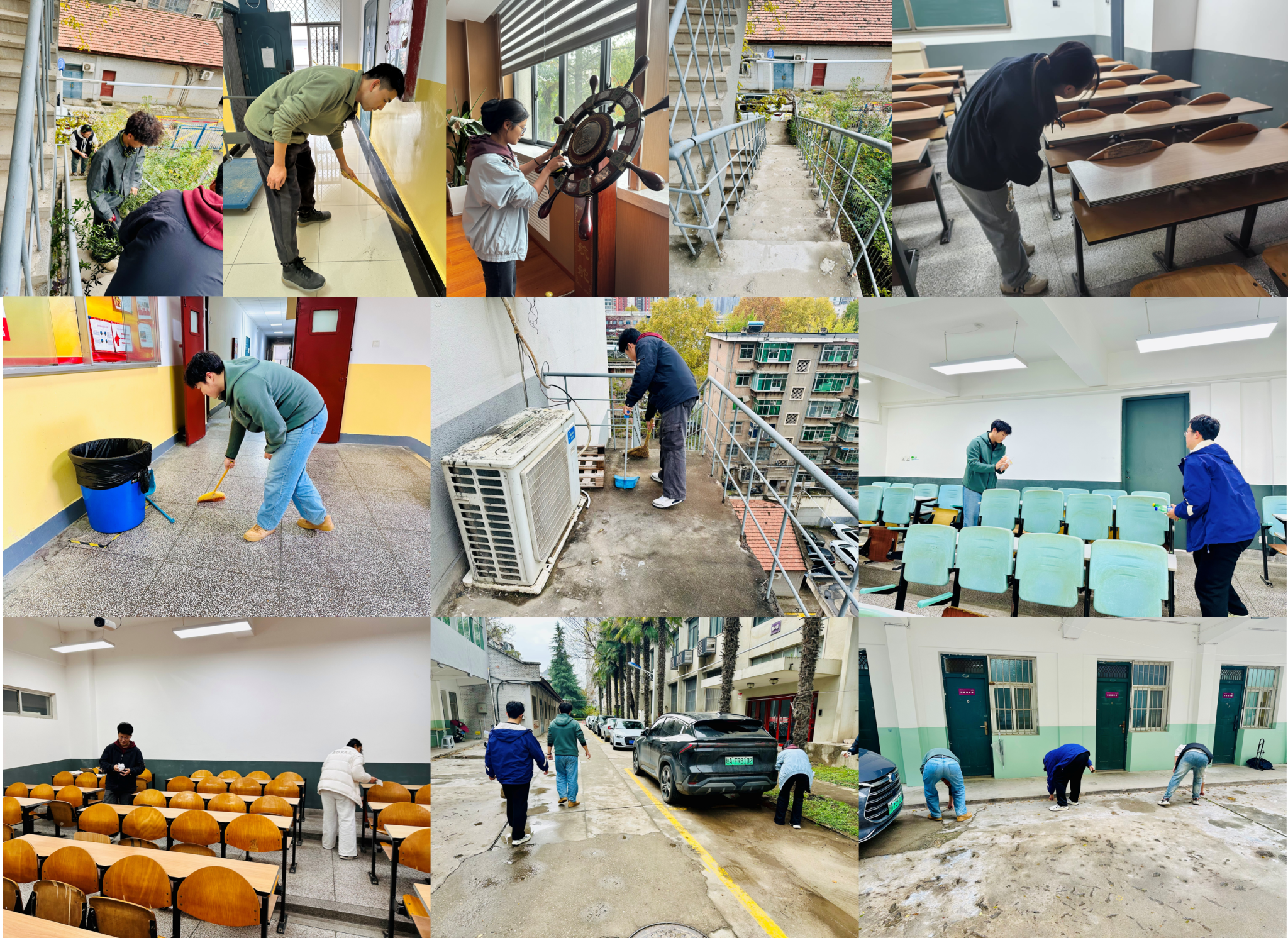 活动中,各班级同学踊跃参与,重点对教四楼、教六楼的教室、走廊、楼梯间等公共区域进行了全面清扫和整理。同学们分工明确、配合默契,发扬不怕脏、不怕累的劳动精神,认真清理卫生死角,规范整理物品摆放,不放过任何一个角落。经过大家的共同努力,整个教学楼区域环境焕然一新,营造出更加干净、整洁、舒适的学习和生活氛围。