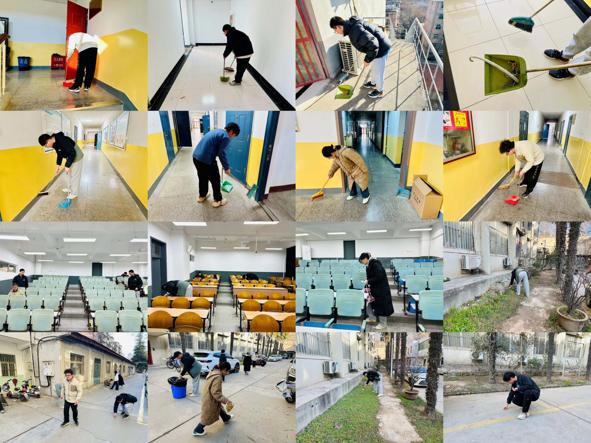 为积极响应学校爱国卫生活动号召,贯彻落实校爱卫办关于开展新学期环境卫生整治工作的通知要求,1月9日,必赢网络游戏平台积极组织学生开展了“周五大扫除”专项活动,以营造整洁优美、文明有序的校园环境。