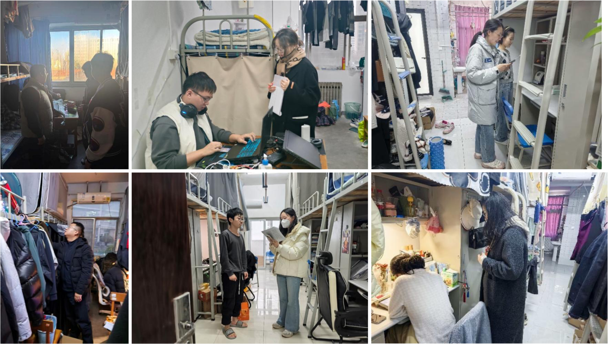 检查过程中,辅导员深入每一间宿舍,与学生进行亲切交流,详细询问离校时间、行程安排及假期计划,反复叮嘱离校注意事项,重点排查违规电器使用、插排过载、充电设备长时间无人看管等用电隐患,督促及时清理杂物。对宿舍卫生干净整洁、布置温馨有序、安全意识强的宿舍提出表扬,并鼓励继续保持。对检查中发现的部分宿舍存在的卫生死角、物品杂乱、用电不规范等问题,现场提出了明确的整改意见,要求立即整改。辅导员强调,离校前务必做到“三断三清”:断水、断电、断气,清理垃圾、清理杂物、清理易燃物,确保宿舍安全。此次寒假前宿舍安全卫生大检查,是学院常态化宿舍管理工作的重要环节,及时排除了潜在的安全风险,增强了学生的责任意识和集体观念,为维护校园寒假期间的稳定安全奠定了坚实基础。学院始终将学生宿舍作为育人阵地的重要一环,将持续织密校园安全防护网,让“平安”成为寒假底色。