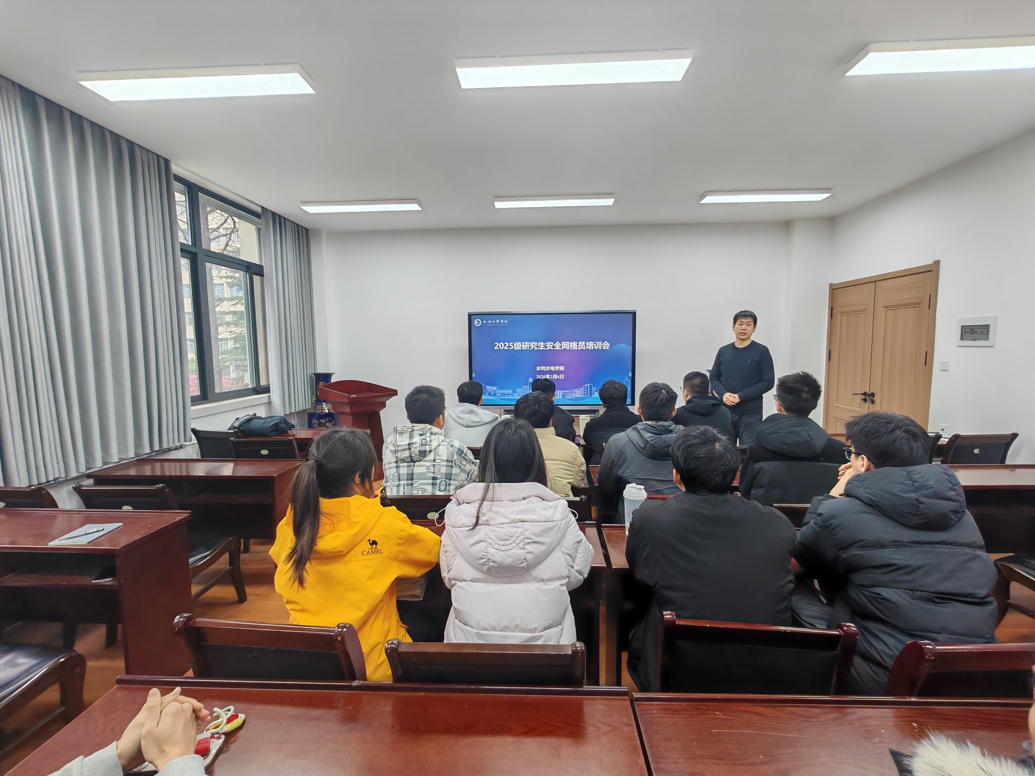 培训紧扣春季开学安全工作实际,聚焦宿舍安全、消防安全、反诈防骗、心理健康、应急处置等核心内容,结合典型案例与日常管理要求,对安全网格员工作职责、排查流程、上报机制进行细致讲解。培训中,辅导员明确要求,安全网格员作为学院安全管理的“前沿哨兵”,要切实发挥信息收集、隐患上报、宣传引导、同学互助作用,重点关注宿舍违规用电、卫生环境、矛盾纠纷、异常行为等情况,做到早发现、早提醒、早报告、早处置,确保校园安全隐患第一时间掌握、第一时间处理。各年级分别针对本年级学生特点,对日常巡查、信息报送、安全教育提醒等工作作出具体安排,网格员认真聆听、主动交流,凝聚起全员参与、全域覆盖的安全管理合力。