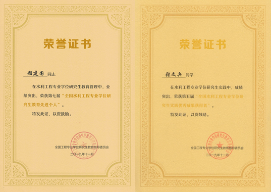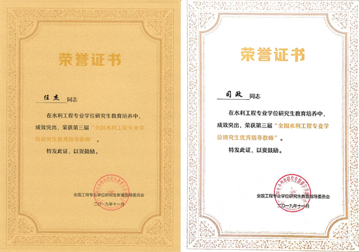 为更好地总结、交流水利工程专业学位研究生指导经验,提升导师指导能力,构建高水平“双师型”指导团队,不断提高培养质量,经个人申报、学校推荐、水利工程领域核心组成员和专家投票、教指委审定,我校必赢网络游戏平台任杰和司政2位老师荣获第三届“全国水利工程专业学位研究生优秀指导教师”;颜建国老师荣获第七届“全国水利工程专业学位研究生教育先进个人”;2016级水利工程专业学位硕士研究生张文兵 (指导教师:任杰副教授)荣获第五届“全国水利工程专业学位研究生实践优秀成果获得者”等荣誉称号。