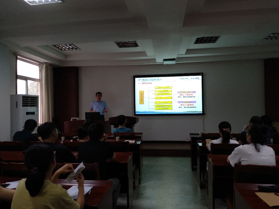 市政工程系主任李家科向新生介绍了学校、学院的基本情况以及市政工程系的学科建设和科研条件,增进了学生对学校、学院以及市政工程系的了解。他重点介绍了我校博硕士研究生的培养过程、毕业条件、科研奖励及奖助学金等方面的政策,并教育研究生要坚守学术诚信。徐志嫱、王东琦、雷蕾等系所教师就科学研究、就业等问题与学生进行了热烈交流。