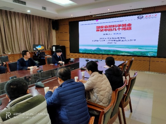 基金撰写阶段,学院与系所同时发力,针对青年、面上、重点等不同项目类别,分类推进指导,主抓项目的科学选题和撰写思路。学院邀请武汉大学李典庆教授为申报教师讲授国家自然科学基金撰写策略及技巧方面的专题报告。