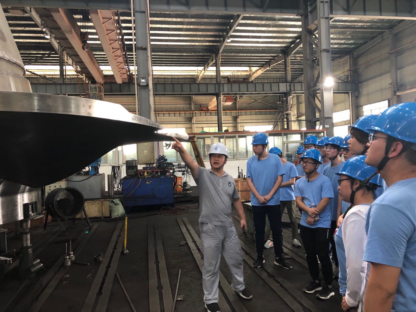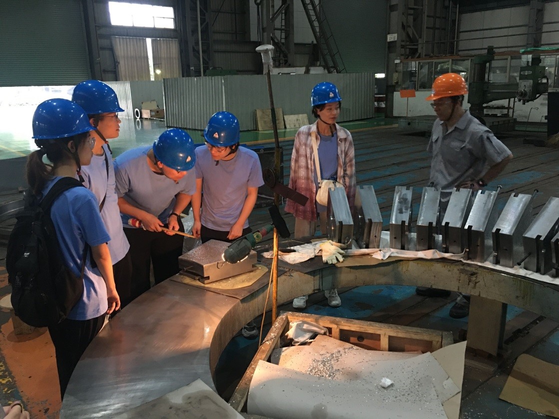 接下来,实习学生分为八个组,轮流深入工厂的各班组、各部门和富安水力机械研究所进行深入学习。通过深入班组实习,实习学生看到了很多书本和课堂中学到的水轮机、发电机各部件的实物,看到了“大国工匠”制造“大国重器”各部件的过程,了解了这些部件从下料、焊接、加工,到装配及试验的全部生产过程及相关技术和工艺,学习了各主要部件在各生产环节的检验项目、检验标准和检验方法,树立了质量是企业的生命的意识。