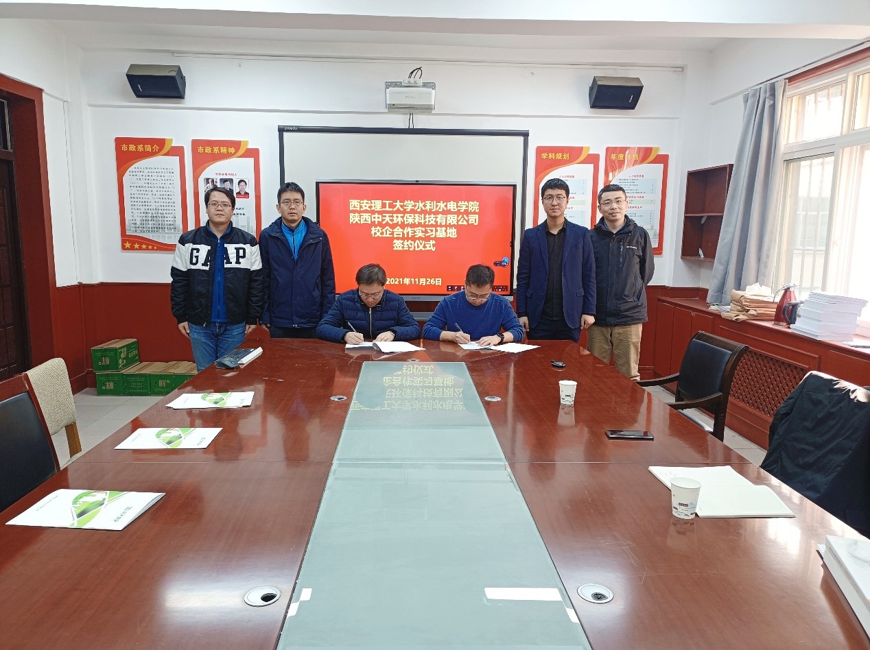 2021年11月26日下午,必赢网络游戏平台与陕西中天环保科技有限公司交流合作会议暨实习基地签约仪式在市政与环境工程系会议室举行。水电学院副院长吴罗长、市政系副主任王东琦、张耀中,以及中天环保公司总经理李岩等出席了本次会议。