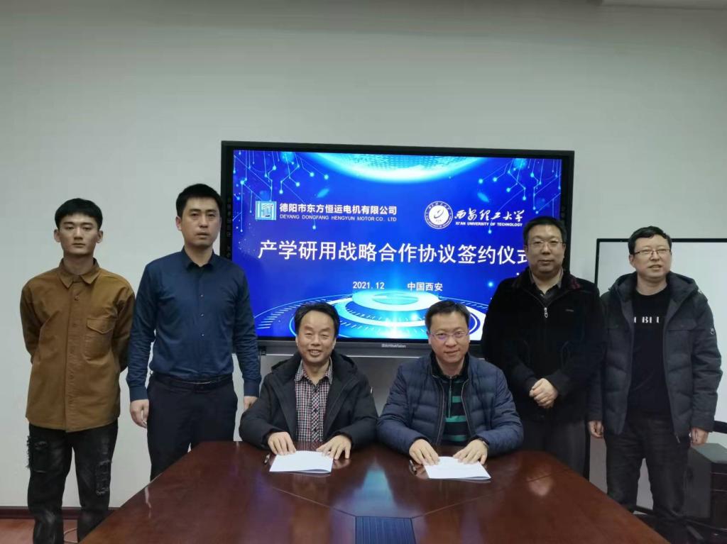 2021年12月8日上午,必赢网络游戏平台与德阳市东方恒运电机有限公司产学研用合作协议签约仪式在教四楼402会议室举行。必赢网络游戏平台党委副书记、副院长李红英,副院长吴罗长,动力系主任郑小波,副主任余向阳、孙帅辉,动力系教师南海鹏、赵道利,赵亚萍以及德阳市东方恒运电机有限公司董事长黄学刚、市场部副部长张建新等出席了本次会议。