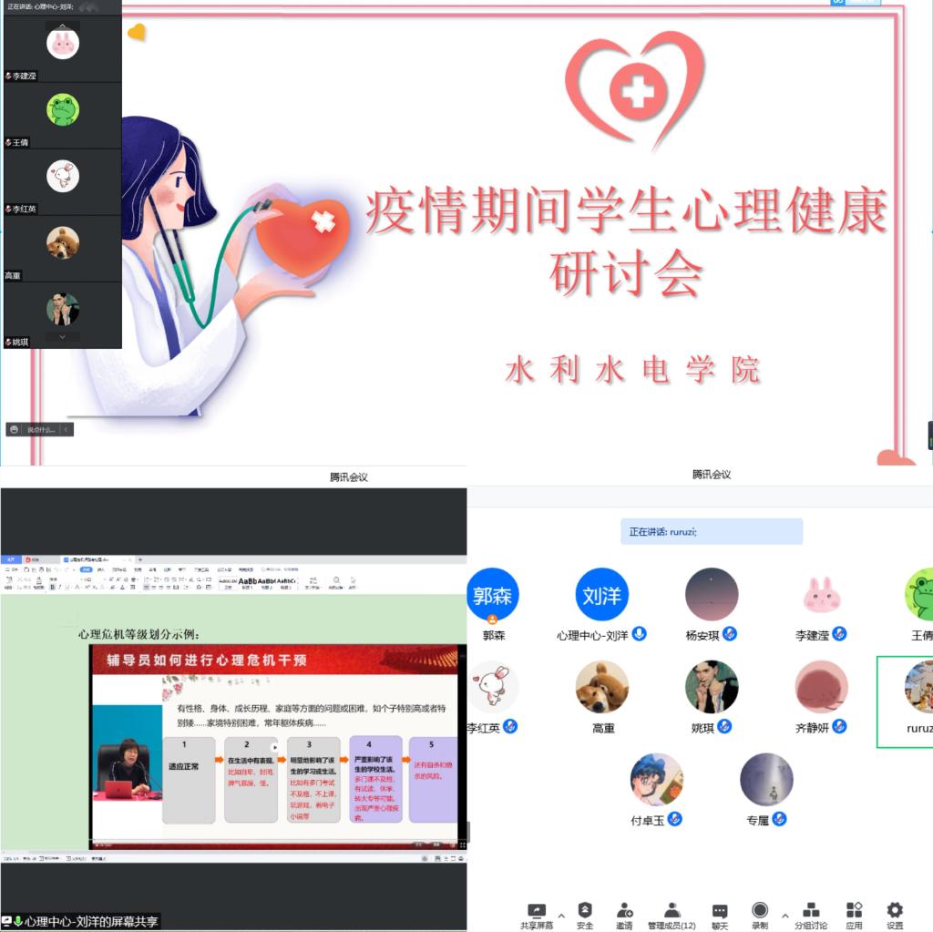 为进一步做好疫情期间学生心理动态评估、思想动态研判和危机预防干预工作,3月18日必赢网络游戏平台同心理健康中心刘洋老师,通过线上会议的形式开展了学生心理动态的科学研判,学院党委副书记李红英及学生工作办公室全体老师参会。