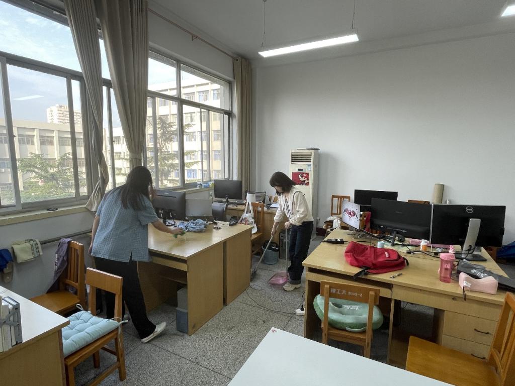活动中,分布在不同教研室的学生党员集中开展卫生清理,大家撸起袖子加油干,清理各类卫生死角、堆物堆料、擦拭窗桌。同时针对教研室中的老旧插座、电线堆叠问题进行排查和整理,在开关、水龙头周围粘贴节电、节水告示,共同打造一个安全舒适的科研环境。最后,同志们用五星红旗装饰教研室,鲜艳的中国红带给同志们每天奋斗的活力,科研之路固有崎岖,我们唯有将先辈们开国以来积极进取、艰苦奋斗的精神贯穿于个人成长之路中,才能走好科研路,成为强国之辈。