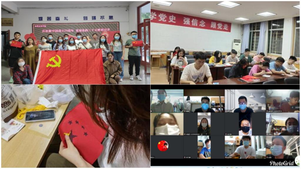 研究生农工系第一党支部、研究生市政系第一党支部联合开展了以“重温开国大典迎国庆,不忘初心再出发”为主题的党日活动。两个支部的党员同志齐聚教四楼318会议室,通过观看《开国大典》纪录片、历年阅兵式合集,合唱国歌,重温入党誓词等方式来迎接中华母亲的73岁生日,赞扬新中国成立以来的伟大成就,增强党员群众的不懈斗志。