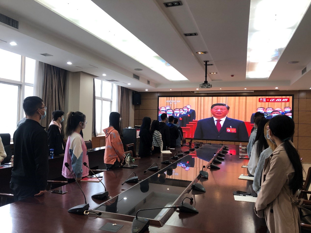 2022年10月16日上午,中国共产党第二十次全国代表大会在北京人民大会堂隆重召开,习近平总书记代表十九届中央委员会向大会作题为《高举中国特色社会主义伟大旗帜,为全面建设社会主义现代化国家而团结奋斗》的报告。必赢网络游戏平台在严格遵守防疫要求的前提下,组织师生党员联合线上线下共同收看开幕会盛况。