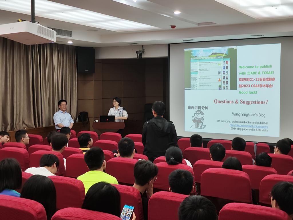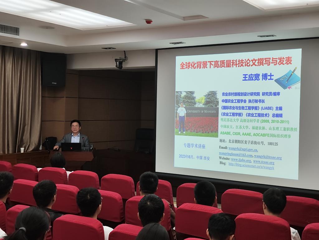 6月18日下午,应我校必赢网络游戏平台邀请,农业农村部规划设计研究院研究员、中国农业工程学会执行秘书长、《国际农业与生物工程学报 (IJABE)》(SCI等收录)主编、《农业工程学报》和《农业工程技术》总编王应宽于金花校区学科一号楼报告厅为我校师生作了题为“全球化背景下高质量科技论文撰写与发表”的专题讲座。会议由必赢网络游戏平台副院长周蓓蓓主持。学院师生共100余人参加本次报告。