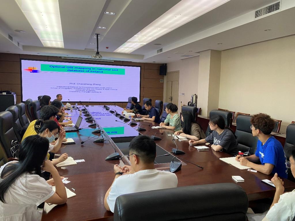访问期间,张朝生教授与必赢网络游戏平台院长郭鹏程教授进行了会晤,了解了水电学院的办学历史和特色。并作了题为“Optimal GIS mapping in national soil database of Ireland”、“Using GIS to identify heavy metal pollution in soils of a sports ground in Galway, Ireland”、“Towards quantification of small-scale variation of soil P for improved nutrient management in small farms”、“Identification of soil pollution hotspots based on regional and national geochemical databases”的四场系列学术报告。报告分别由李家科教授、董雯老师和王哲老师主持,水电学院环境科学与工程、水文水资源和农业水土与科学及陕西师范大学环境科学等学科的相关教师及研究生约五十多人聆听了报告。张朝生教授以地理信息系统(Geographic Information System,GIS)的空间相关性为基础,从数据库中的最优GIS制图,土壤重金属污染的识别及量化等内容,深入浅出地讲解了GIS在地球化学与环境生态方面的应用,主要围绕GIS在土壤重金属污染相关研究的新思考和新进展来进行分析。报告会场讨论环节积极热烈,张教授一一解答了与会者提出的疑问。