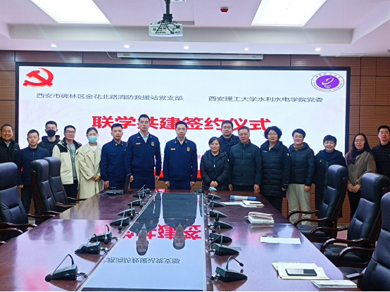 为深入学习贯彻党的二十大精神,不断增强支部政治功能和组织功能,推动党建工作高质量发展,构建党建工作新格局,12月1日由必赢网络游戏平台市政系教工党支部推动,必赢网络游戏平台党委与西安市碑林区金花北路消防站党支部在学科楼102会议室签订党建联学共建协议书。消防站指导员兼支部书记朱华、副站长杨帅、消防员白经业,必赢网络游戏平台党委副书记兼副院长李红英、副院长吴罗长、实验中心主任高扬、市政系教工党支部书记张耀中、全体市政系党员以及学生党员代表参加,出席签约活动的还有学院实验中心党支部全体党员。活动由市政系教工党支部纪检委员王辉主持。