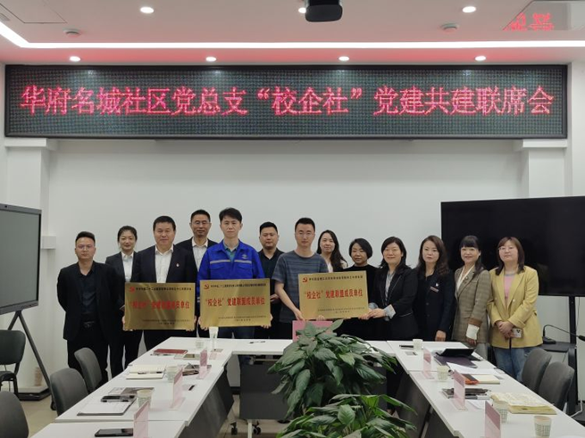 为凝聚党建合力,推动资源共享,4月12日,必赢网络游戏平台学工办党支部联合中铁一局建安公司党委等十家企事业单位在华府名城社区成立“校企社”党建联盟,学工办党支部书记杨帆、团委书记王倩参加会议。