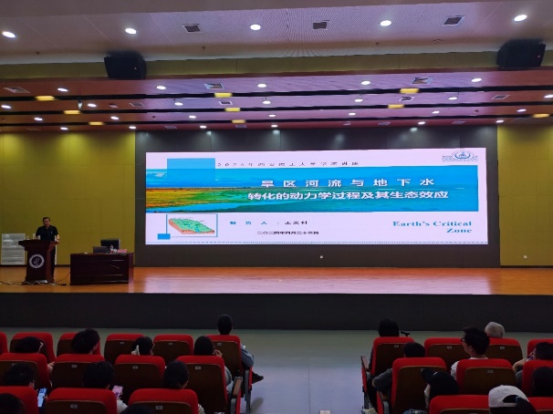邓铭江长期致力于西北跨界河流研究和开发建设,坚守新疆水利工程科技一线40年,他淡泊名利、潜心研究。王文科40余年来一直以西北大型盆地为研究区域,他的足迹几乎覆盖了整个西北地区。两位教授的报告,全面生动展示了如何将论文写在祖国大地上,为师生们带来一场别开生面的学术报告。