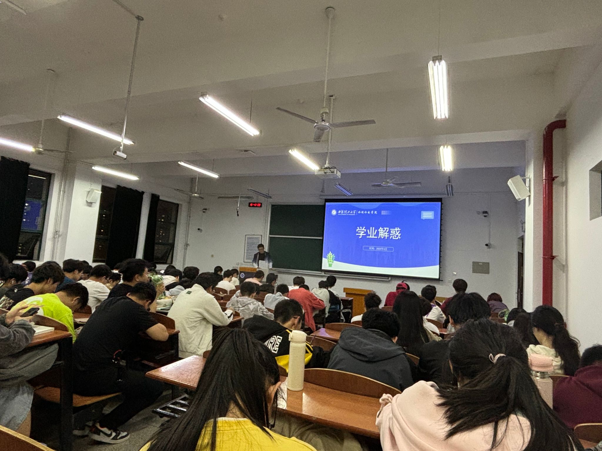 本次讲座首先通过多个具体案例来形象地阐述了学业焦虑都有哪些具体的表现,从而让学生代入自身去判断自我的状态;然后,通过介绍学业焦虑的定义、特征和影响,帮助学生更好地认识自己的心理状态,认识到缓解学业焦虑问题的紧迫性;随后,深入分析了学业焦虑的各种成因,从学习环境、学习模式、学术压力、家庭期待等多个角度解读学业焦虑的根源,为学生提供更清晰的认识和思考;之后,介绍了一系列科学有效的应对策略,包括时间管理、群组帮助、压力释放、情绪调节等方面的技巧,帮助学生建立健康的学习与生活习惯;最后,鼓励学生积极寻求帮助,建立和扩展社交支持网络,增强心理韧性,共同度过学业压力带来的困难时期。