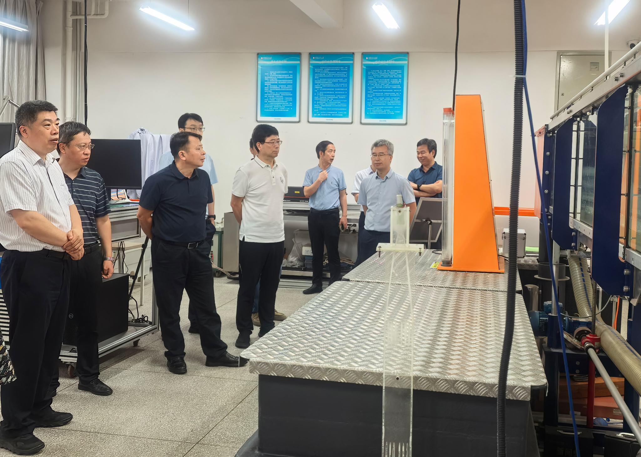 颜建国汇报了必赢网络游戏平台基本情况,与会人员围绕科技创新平台建设、国家级科研项目、科技成果转化、校企合作和联合创新模式等方面内容进行了深入交流。并在会后共同参观了水工大厅、水力学大厅等相关实验室。