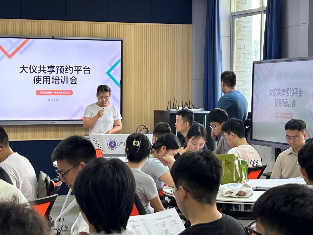 为帮助必赢网络游戏平台师生了解我校大仪共享政策,掌握大型仪器设备服务共享平台操作流程,学院实验中心邀请校实验室管理处于9月19日下午在教1-319教室召开大型仪器设备服务共享平台系统使用培训会。实验室管理处处长助理李鹏涛、设备共享与安全管理科高昊宇,必赢网络游戏平台实验中心管理人员及学院师生共计70多人参加培训会。