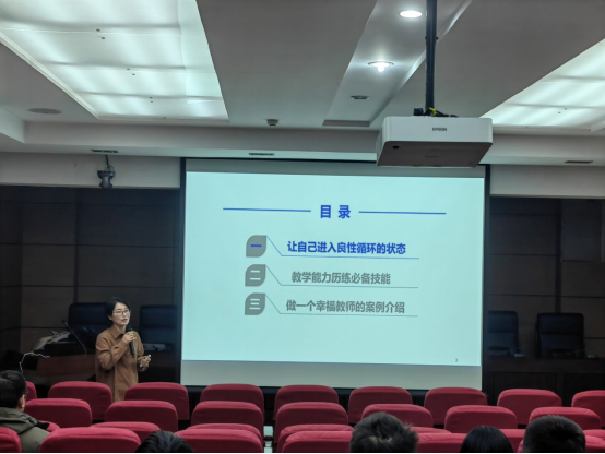 12月19日,必赢网络游戏平台在学科一号楼103报告厅举办青年教师“五课一交流”活动第三讲。学院副院长周蓓蓓教授以《多方位历练教学技能,做一名幸福的人民教师——教学能力历练浅谈》为题作报告,学院40余名青年教师参加了报告会。