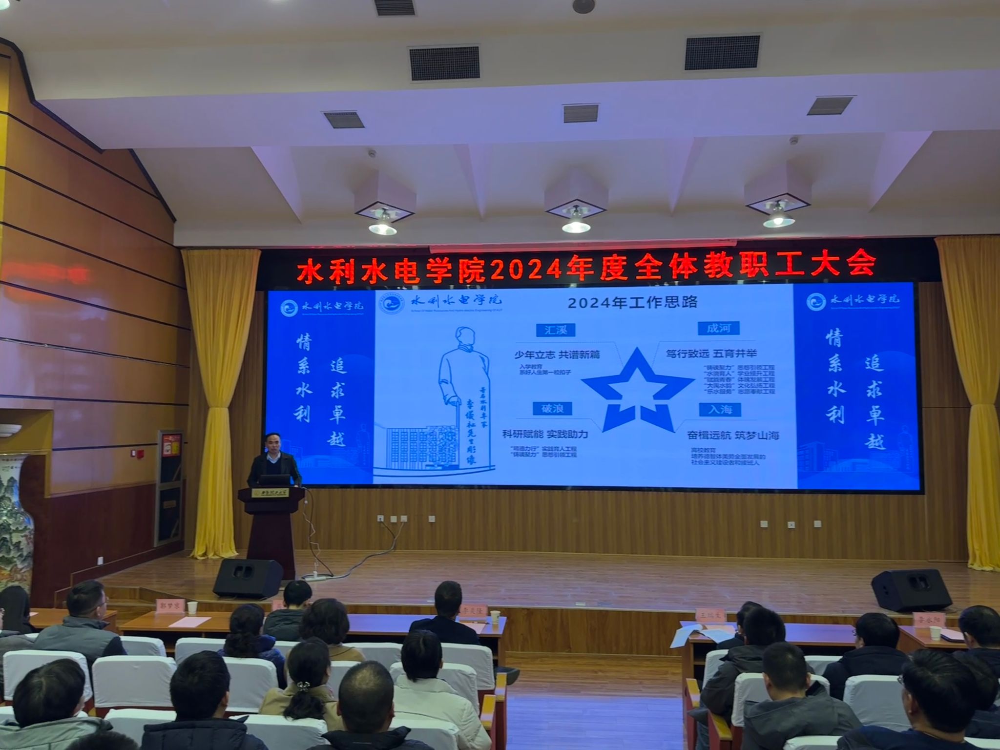 李炎隆在讲话中指出,在全院师生的共同努力下,2024年学院各项工作取得了一定成绩,但也要看到我们目前面临的困难与挑战。他强调,全体教师要认真总结2024年各项工作,科学谋划2025年重点工作。全院上下要锚定“双一流”建设目标,凝聚全体教职工的智慧和力量,团结奋进,形成强大的发展合力。要勇挑重担,敢于担当,以高度的责任感和使命感,积极投身到学院人才培养、学科建设、科技创新等各项工作中去,以实干业绩向学院全体师生交上一份满意答卷。