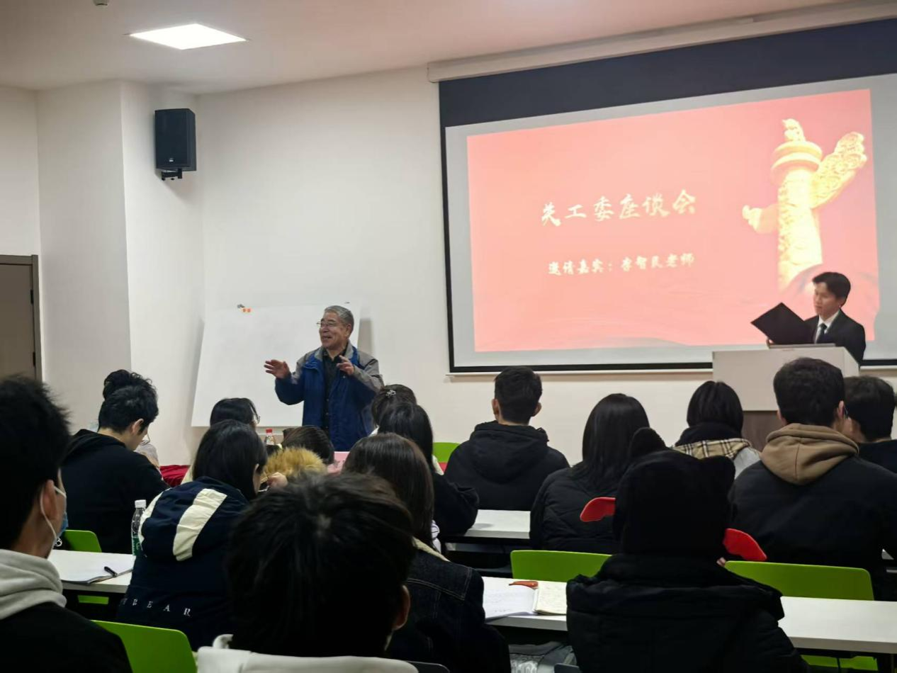 座谈会上,李智民老师结合自身多年教育工作和关工委实践经验,围绕青年成长这一主题展开分享。他结合自己经历,阐述了关工委工作的初心与使命,回顾了学院发展历程中的重要节点与光荣传统,通过生动的历史片段和一代代优秀教师的感人事迹,展现了学院深厚的育人底蕴。李老师勉励同学们要传承学院精神,脚踏实地、勇于担当,将个人发展融入水利事业和国家需要之中。