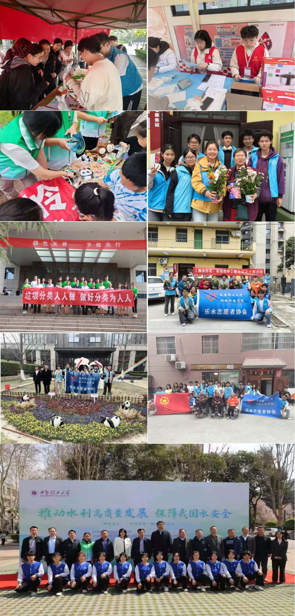优秀志愿者标兵及优秀志愿者活跃在乡村振兴、社区治理、赛会服务、特殊关爱等多个领域,用实际行动诠释了“奉献、友爱、互助、进步”的志愿精神,展现了新时代水利学子的责任担当与青春风采。