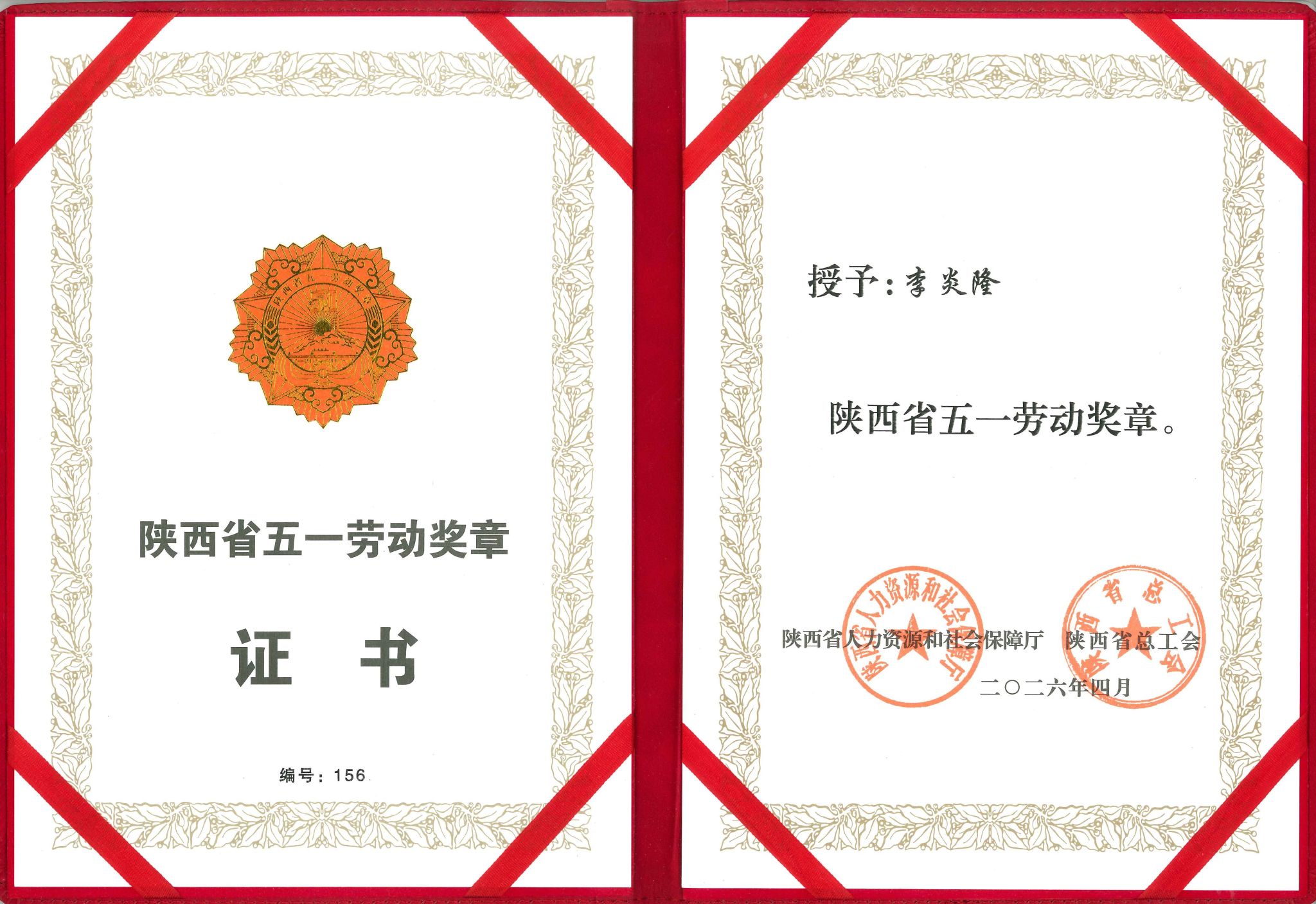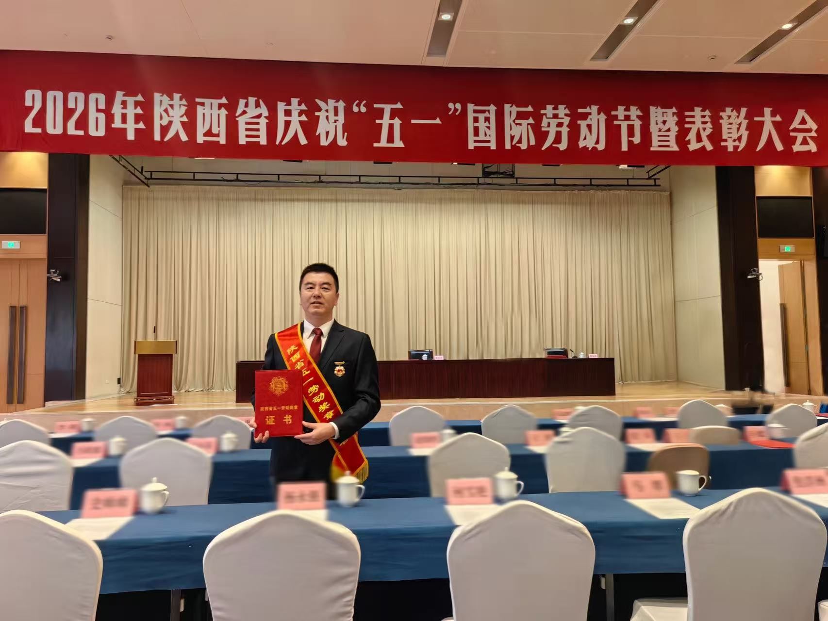 4月29日上午,2026年陕西省庆祝“五一”国际劳动节暨表彰大会在西安举行,必赢网络游戏平台李炎隆教授获2026年陕西省五一劳动奖章并接受表彰。