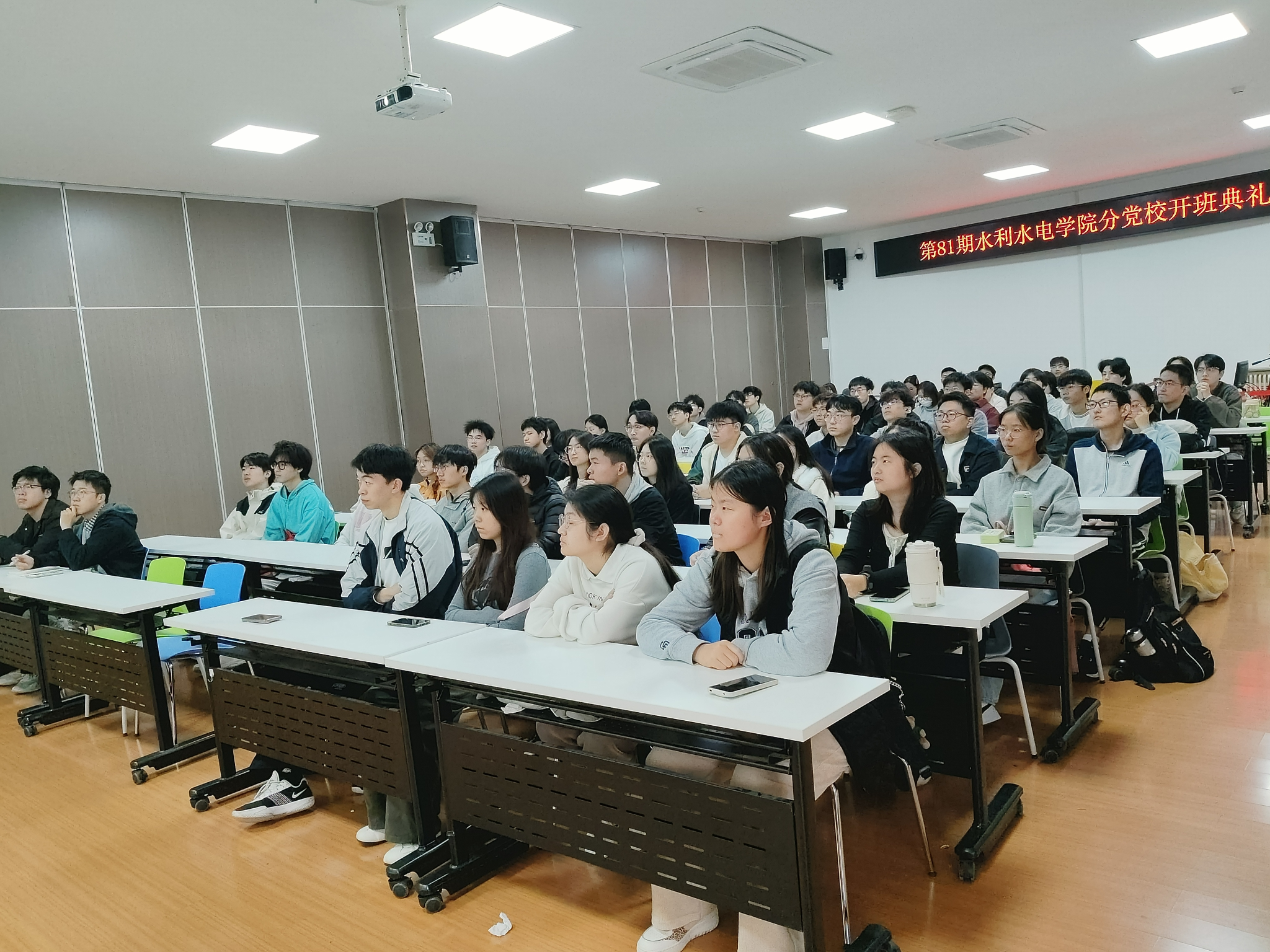 李永阳和王倩向第81期学员表示欢迎,并提出要求:一是筑牢理论根基,加强对习近平新时代中国特色社会主义思想、党的二十大和二十届二中、三中、四中全会精神以及《中国共产党章程》的学习;二是淬炼党性修养,从党史与革命精神中汲取力量,检视入党动机,强化纪律意识,传承共产党人优良作风;三是厚植家国情怀,结合自身专业,在学习科研中攻关、在实践中服务,以党员标准严格要求自己,以实际行动展现水院学子风采。在后期的培训学习中要端正态度、学以致用,确保培训取得实效。